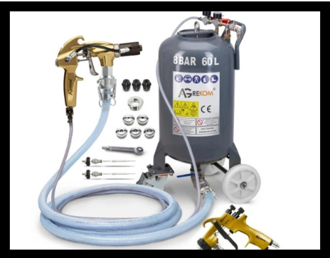 Urządzenie wyposażone jest w zbiornik o pojemności 60-litrów i dwa pistolety przeznaczone do